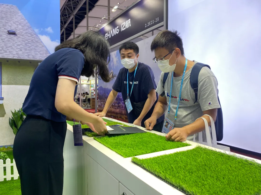 本屆廣交會,共創(chuàng)草坪主推高科技家用別墅人造草坪產(chǎn)品,用該產(chǎn)品鋪設(shè)了展臺地面,打造了別墅花園式場景。高科技家用別墅人造草坪是行業(yè)革命性產(chǎn)品,憑借共創(chuàng)草坪全球領(lǐng)先的創(chuàng)新研發(fā)水平,在民用草坪領(lǐng)域,實現(xiàn)了真正的安全環(huán)保及100%可回收利用,積極響應(yīng)了國家在低碳環(huán)保領(lǐng)域的號召,同時引領(lǐng)行業(yè)發(fā)展趨勢和產(chǎn)品技術(shù)創(chuàng)新。